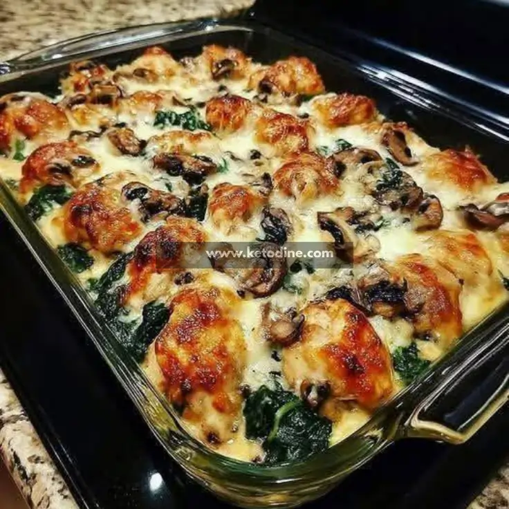 Cheesy Keto Chicken Casserole with Spinach and Mushrooms