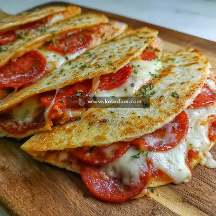 Cheesy Pepperoni Pizza Quesadillas are a fusion-style dish combining Italian pizza flavors with a Mexican quesadilla format. They are pan-toasted low-carb tortillas filled with cheese, pepperoni, and pizza seasoning, resulting in a quick, comforting, pizza-inspired meal.
