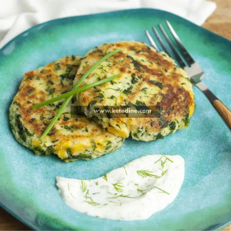 A quick and healthy vegetarian fritter that swaps potatoes for cauliflower to keep things low-carb. These patties are pan-fried until golden and served with a zesty herb dip for a perfect keto-friendly meal.