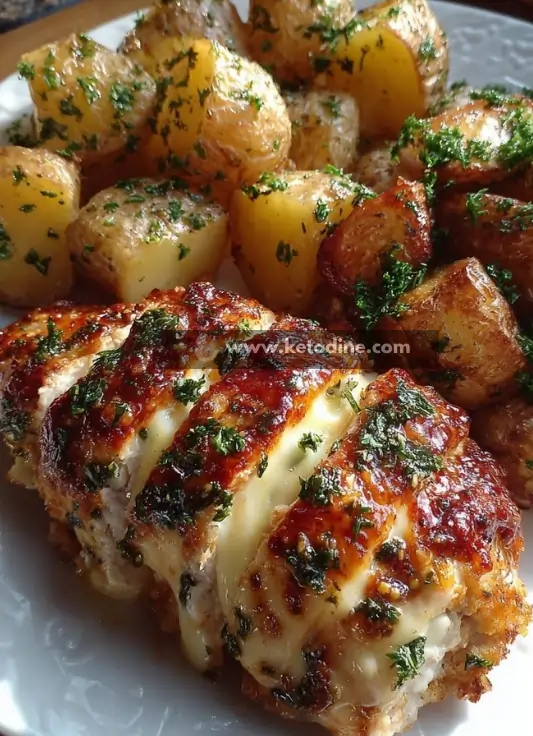 Cheesy Stuffed Chicken Breast with Herb-Roasted Potatoes
