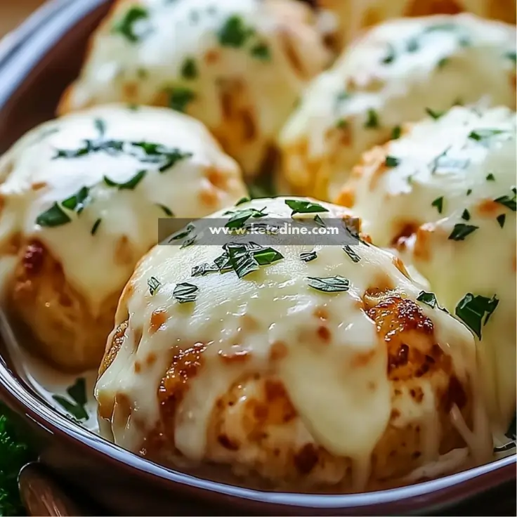A delicious, high-protein meal featuring seasoned ground chicken and melted mozzarella cheese. These bites are baked until golden and served warm for the ultimate keto-friendly comfort food experience.