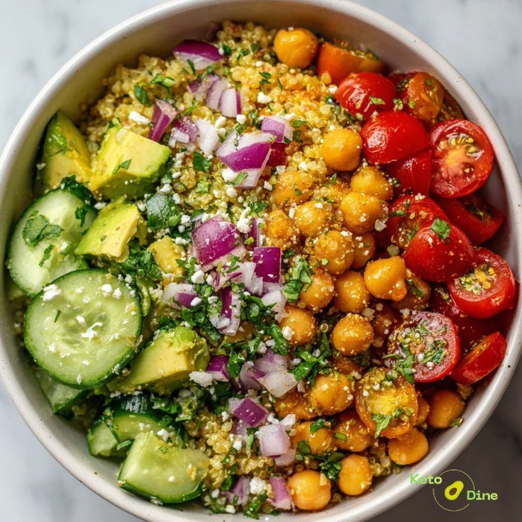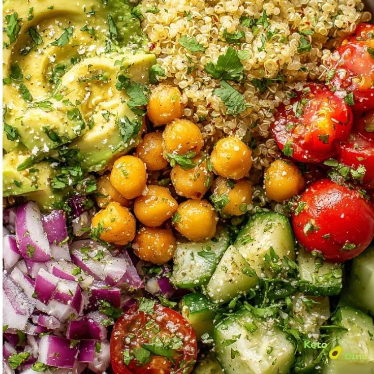 While quinoa and chickpeas are healthy whole foods, they are generally higher in carbohydrates than traditional keto staples. However, for those on a “Lazy Keto” or more flexible low-carb plan, this bowl can be adapted by increasing the healthy fats and reducing the grain portion. For a strict ketogenic version, one might swap the quinoa for cauliflower rice and the chickpeas for hemp hearts to keep net carbs within the 5–10g range.