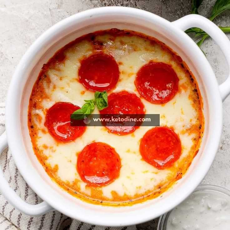 It’s layered with marinara, mozzarella, and classic toppings like pepperoni, then baked until bubbly and golden. Think of it as a cross between baked ricotta and deep-dish pizza — but keto-approved.