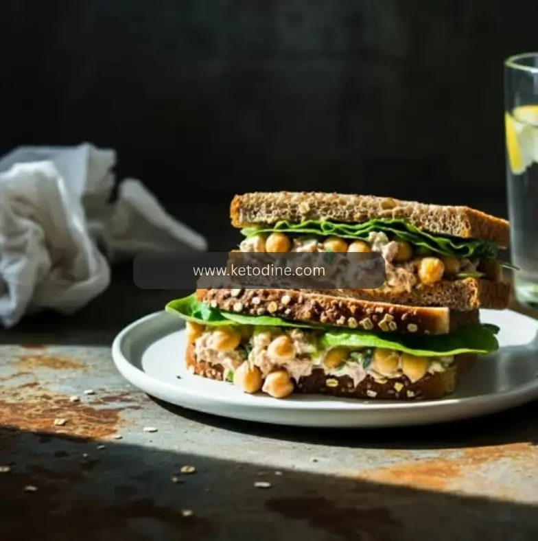 Meals that combine protein, healthy fats, and fiber often feel more satisfying than carb-heavy lunches. This sandwich uses tuna as a lean protein source while chickpeas add fiber and structure.