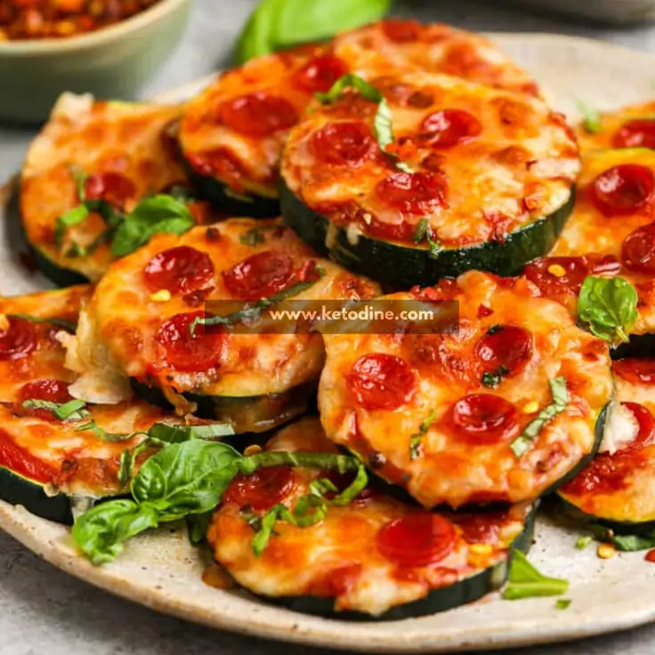 Fresh zucchini slices transformed into bite-sized pizzas topped with gooey cheese and savory pepperoni. A quick, 25-minute keto snack that is both nutritious and incredibly satisfying.