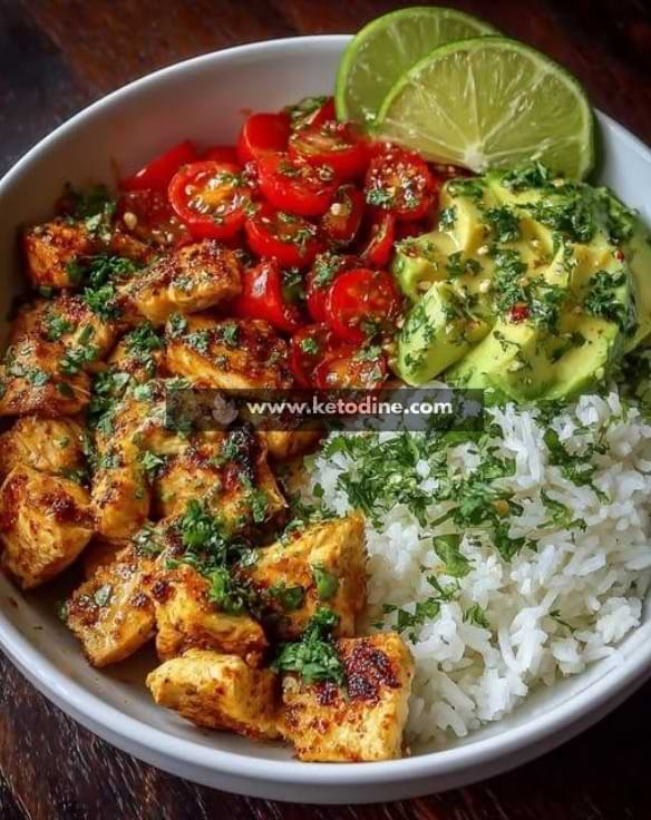 Yes — with a few smart adjustments. The chicken provides high protein, which supports satiety, while avocado offers healthy fats that help you feel full longer. For a keto or low-carb approach, replacing white rice with cauliflower rice significantly lowers carbs while keeping the meal satisfying. Portion awareness and balanced ingredients make it weight-loss friendly without feeling restrictive.