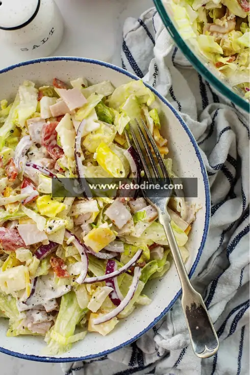 Keto Grinder Salad is a low-carb salad inspired by the traditional Italian grinder sandwich. Instead of bread, it uses crisp lettuce combined with deli meats, sliced cheese, onions, banana peppers, and a creamy grinder-style dressi