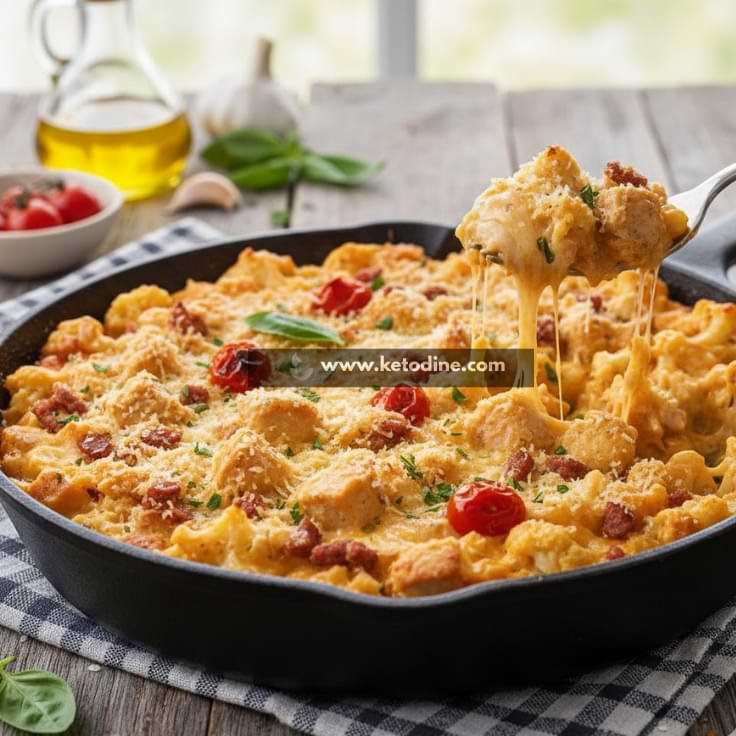 This dish is a keto-friendly twist on classic chicken parmesan and macaroni and cheese combined into one comforting meal. It blends Italian-inspired flavors — tomato, parmesan, herbs, and creamy cheese sauce — with tender chicken and low-carb pasta. The one-pot cooking method keeps it simple and convenient while creating a rich, cohesive flavor. It’s essentially comfort food reimagined for a low-carb lifestyle.