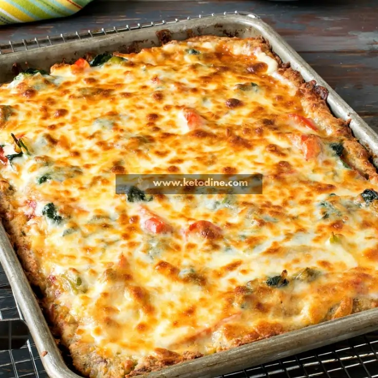 A delicious, family-sized tray of cheesy goodness that swaps the heavy carbs for a high-protein, almond flour base. This sheet pan wonder is loaded with fresh vegetables and melted cheese, providing a satisfying crunch in every square.