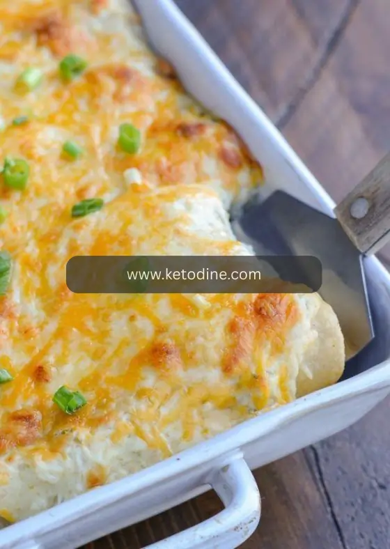 Keto sour cream chicken enchiladas are a low-carb twist on traditional Mexican enchiladas. Instead of corn tortillas, keto-friendly wraps are used to keep carbs low.