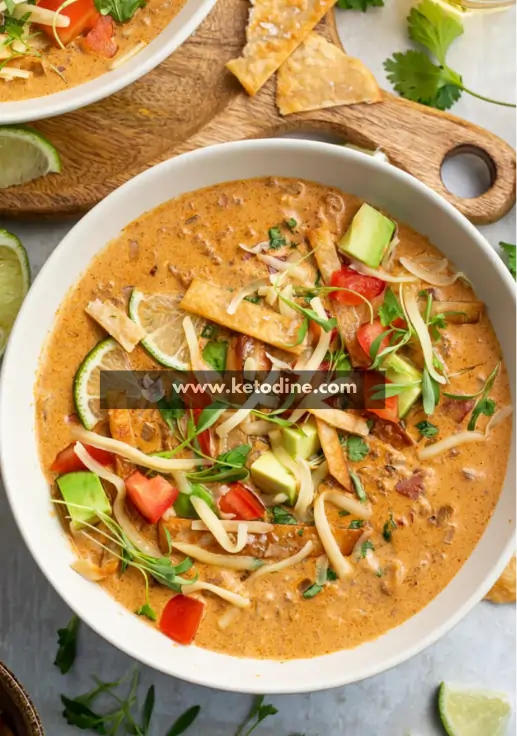 Keto Taco Soup is a low-carb, high-fat Tex-Mex–style soup made with seasoned meat, taco spices, a creamy broth, and fresh toppings like avocado, tomato, lime, and cheese. It tastes like a taco in warm, spoonable form—comforting, filling, and keto-friendly.