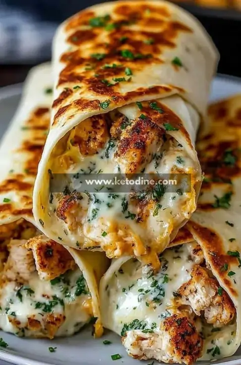 This dish is a modern, keto-friendly take on a classic grilled chicken burrito or wrap, focusing on high-quality fats and lean protein. It features seasoned chicken breast sautéed until golden, tucked into a low-carb tortilla with a generous blend of cheeses and fresh parsley. Its culinary style leans toward American fusion, emphasizing bold garlic flavors and a “crunch-wrap” inspired toasted finish.