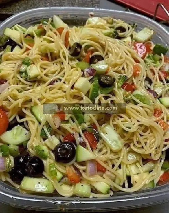 Keto spaghetti salad is a low-carb version of traditional pasta salad, made using keto-friendly noodles instead of regular pasta. It combines fresh vegetables like cucumbers, peppers, and olives with a light dressing for a refreshing dish. This salad is inspired by classic cold pasta salads but adapted for keto diets.
