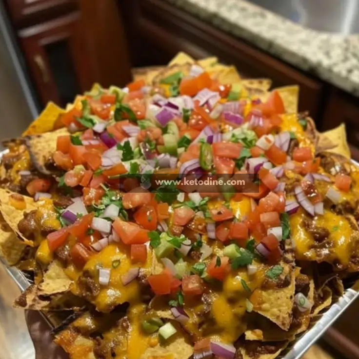 Keto Nachos are a low-carb reimagining of the classic Tex-Mex appetizer, substituting traditional corn chips with keto-friendly alternatives like almond flour chips or pork rinds. This dish features high-fat, moderate-protein toppings such as seasoned beef and melted cheese, finished with fresh, low-glycemic vegetables. It’s a versatile staple in modern low-carb cooking that prioritizes bold spices and fresh textures over starch.