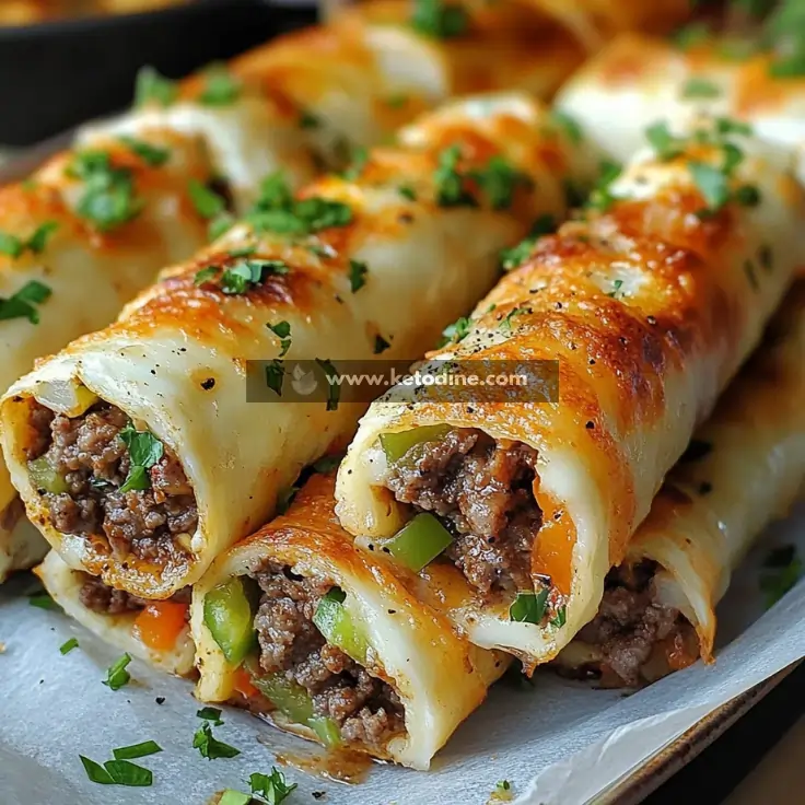 Keto Philly Cheesesteak Roll Ups are a low-carb adaptation of the classic American cheesesteak, where seasoned beef is rolled with cheese and vegetables instead of being served in a hoagie roll. It’s a skillet-style dish with bold, savory flavors.