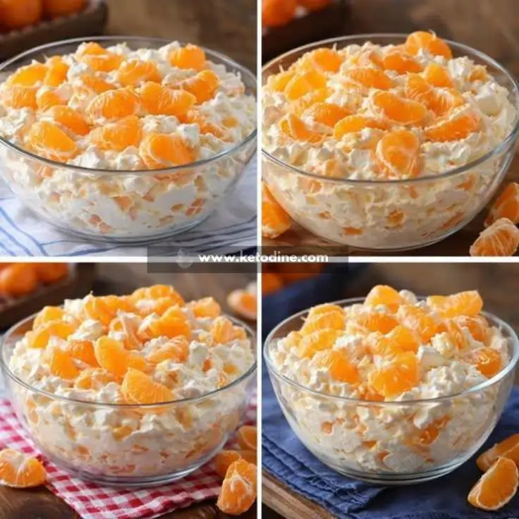 This dish is a modern, low-carb take on the classic “ambrosia” or “orange fluff” salad often found at family gatherings. It features a base of whipped heavy cream and tangy cream cheese folded together with juicy mandarin segments. The result is a chilled, airy dessert or side dish that balances creamy decadence with fruity brightness.