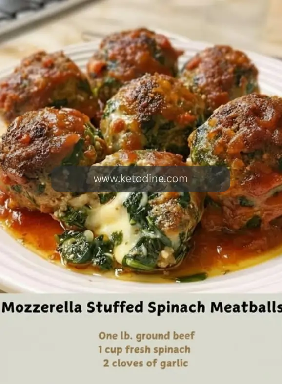 Mozzarella stuffed spinach meatballs are a savory dish made from seasoned ground beef mixed with spinach and wrapped around a soft, melty cheese center. They’re typically baked or pan-cooked and finished in a rich tomato sauce.