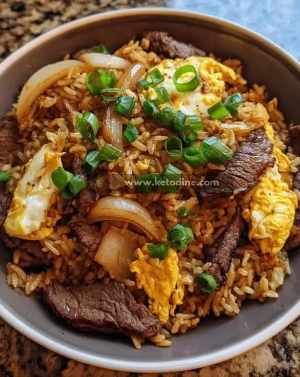 This dish is a low-carb reimagining of traditional Chinese-style fried rice, focusing on high-quality protein and aromatics. It features tender strips of beef, fluffy scrambled eggs, and plenty of onions sautéed to perfection. Using cauliflower rice as the base allows the savory sauces to soak in deeply while keeping the net carbs minimal.
