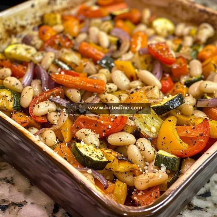 This Rustic Roasted Vegetable and Cannellini Bean Bake is cozy, colorful, and bursting with Mediterranean flavor. Tender zucchini, sweet roasted tomatoes, creamy cannellini beans, and aromatic herbs come together in one warm, comforting dish that feels both nourishing and satisfying. The edges caramelize beautifully while the beans stay soft and buttery inside.