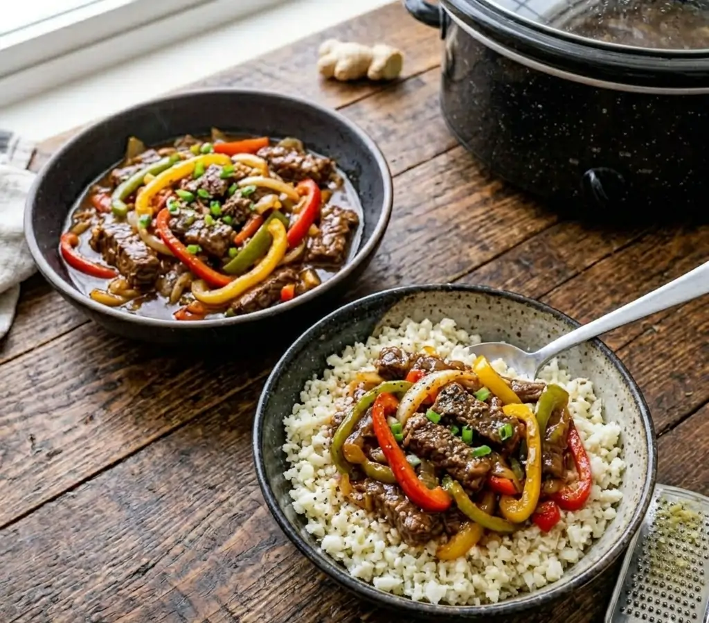A delicious, low-carb take on the classic Chinese-American Pepper Steak. This slow-cooked meal features tender beef and colorful peppers in a rich, keto-safe sauce. Perfect for easy weeknight dinners and healthy meal prepping.
