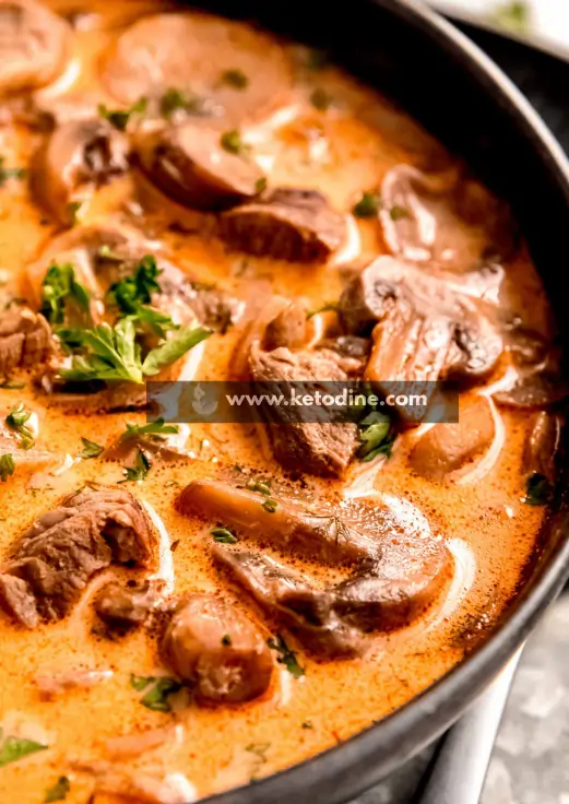 Reduce heat to low and stir in heavy cream. Return the steak to the pot and cook another 5–7 minutes until the soup thickens slightly.